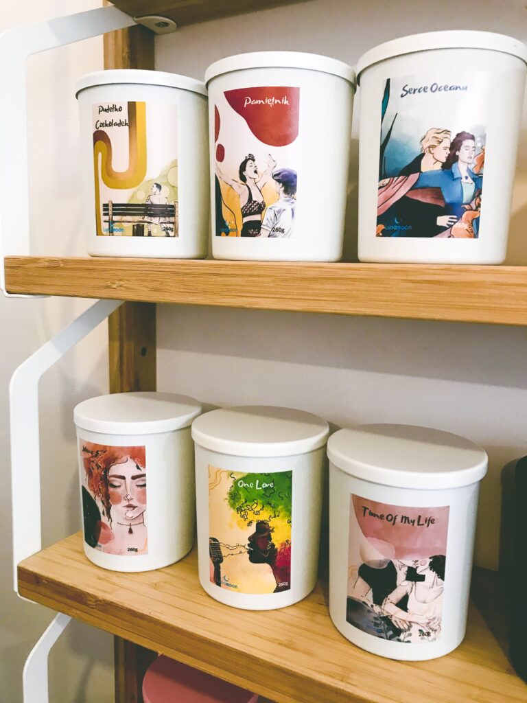 Świece to też ilustracje autorstwa polskich artystek. Taka świeca to nie jest masowy wyrób, ale niemal bardzo osobisty dodatek do domu, który – a taki cel stawiają sobie właściciele pracowni – otuli go zapachem. To tak jakby z potrzeby serca dzielić się miłością. I może dlatego, w tym drugim domu znalazło się też miejsce dla przyjaciół Edyty i Mariusza, artystów-rękodzielników z Poznania oraz innych części Polski. Znajdziecie tutaj niepowtarzalną ceramikę (m. in. kubki, wazony czy talerze), kosmetyki, dekoracje, akcesoria do domu czy oryginalną biżuterię jak np. ta, która powstała z kawałków rozbitego lustra. W zachwyt wprawiają też pledy wykonane ręcznie na najprawdziwszym krośnie.