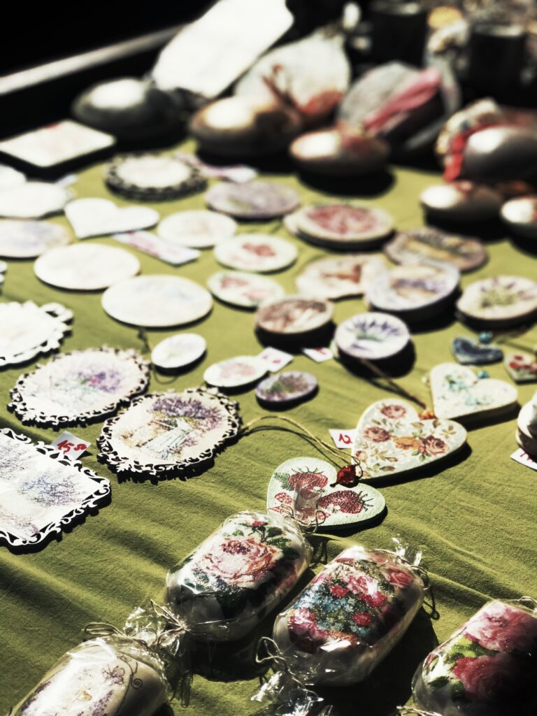 A gdyby tego było mało, to na stoisku pani Małogorzaty można podziwiać (i kupować, oczywiście) ozdoby, zawieszki czy bomki własnej roboty i zawsze uśmiechniętą i pełną werwy sprzedawczynię.