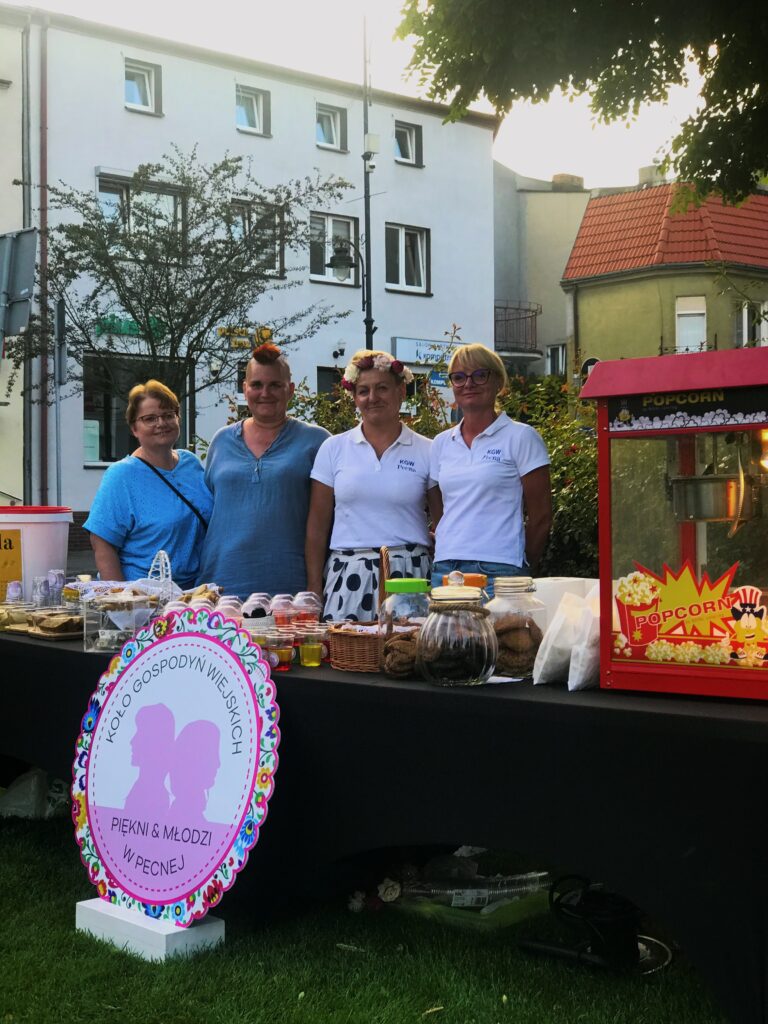 Spotykamy je przy stanowisku z łakociami domowej roboty. Na stole są marchewki, ciastka, słone paluchy, popcorn czy cytrynowa lemoniada. Panie częstują każdego chętnego i nie chcą zapłaty – kto chce, może wesprzeć organizację charytatywną. Zawsze uśmiechnięte i pełne energii oraz nowych pomysłów. W planach już kino plenerowe w rodzinnej wsi Pecna, a pod koniec września lokalne święto pyry.